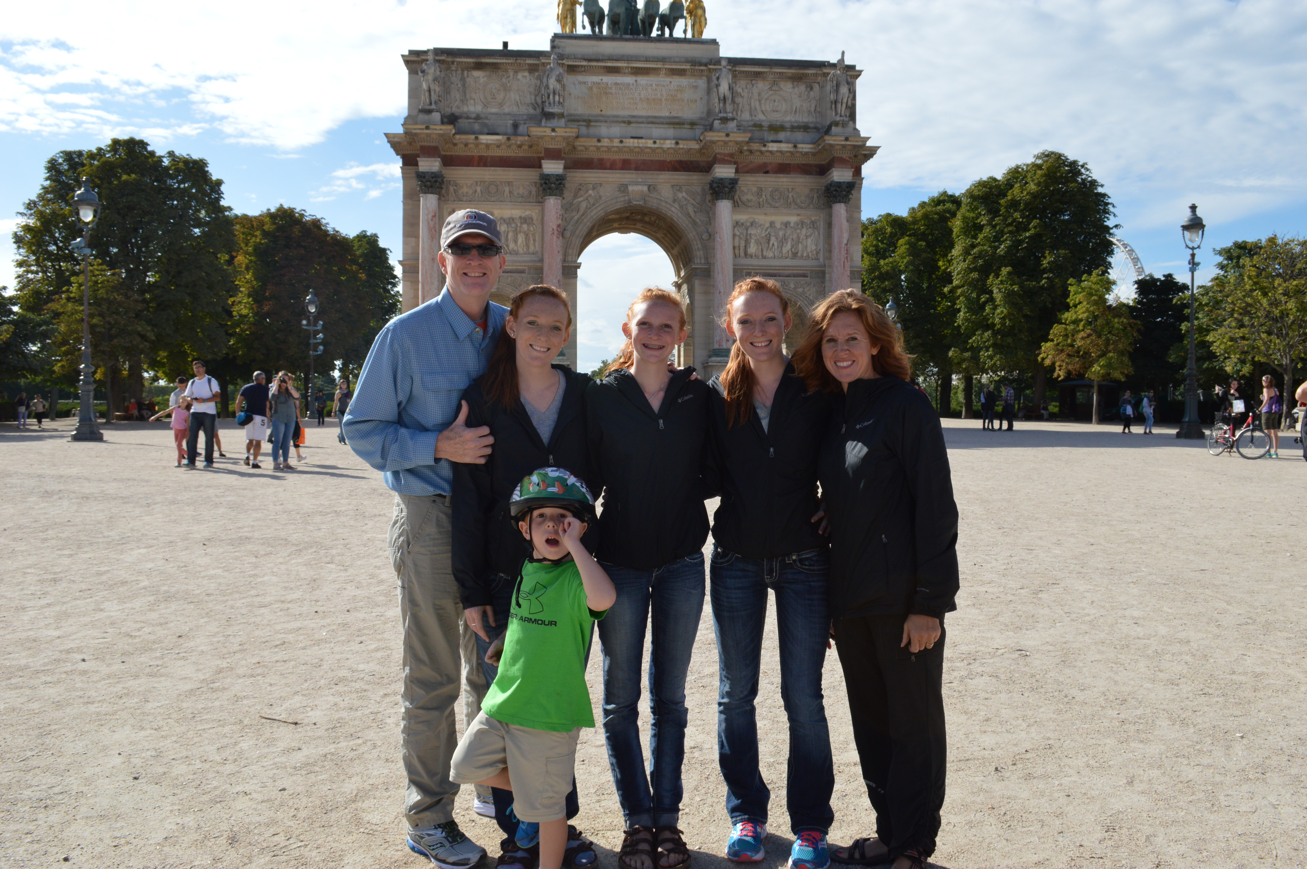 Oh yes, and here is our happy family in front of the Arc de Triomphe……NOT. I thought it was kind of small, but honestly had no idea the size so we gathered for a picture and later found out that we were posed in front of the Arc de Triomphe du Carrousel. Go ahead and have yourselves a good laugh! This is actually half the size of the real thing. The Arc de Triomphe was comissioned by Napoleon to be built so he could prance under it after his victories, but it didn’t get done in time so they quick threw this little one up so he’d have something to ride under……..oh brother.