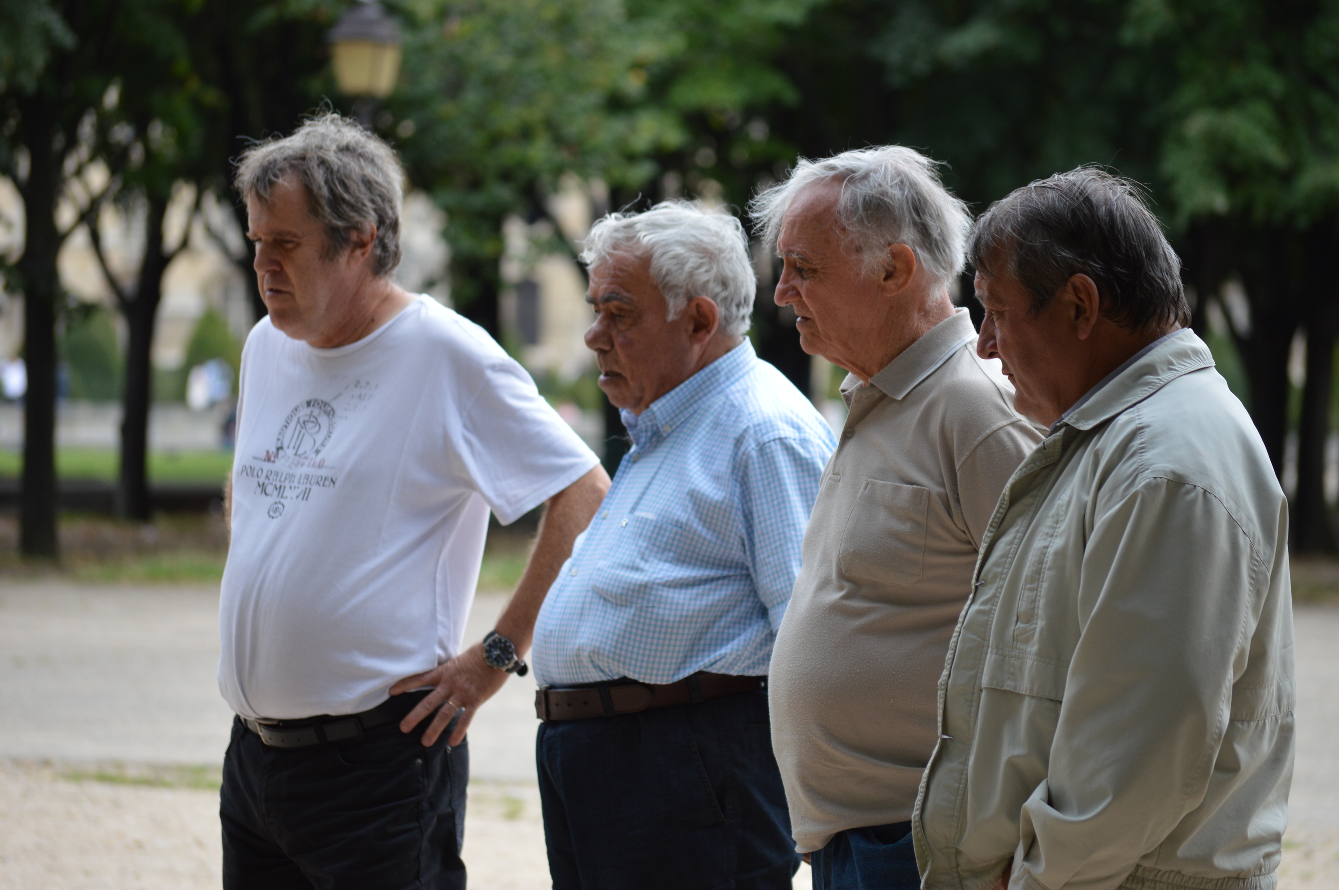 These men were very serious at their game. One tosses a little ball and they each have 3 steele balls that they try and get closest to the little ball. A game of skill and maybe a little luck. These guys were GOOD!