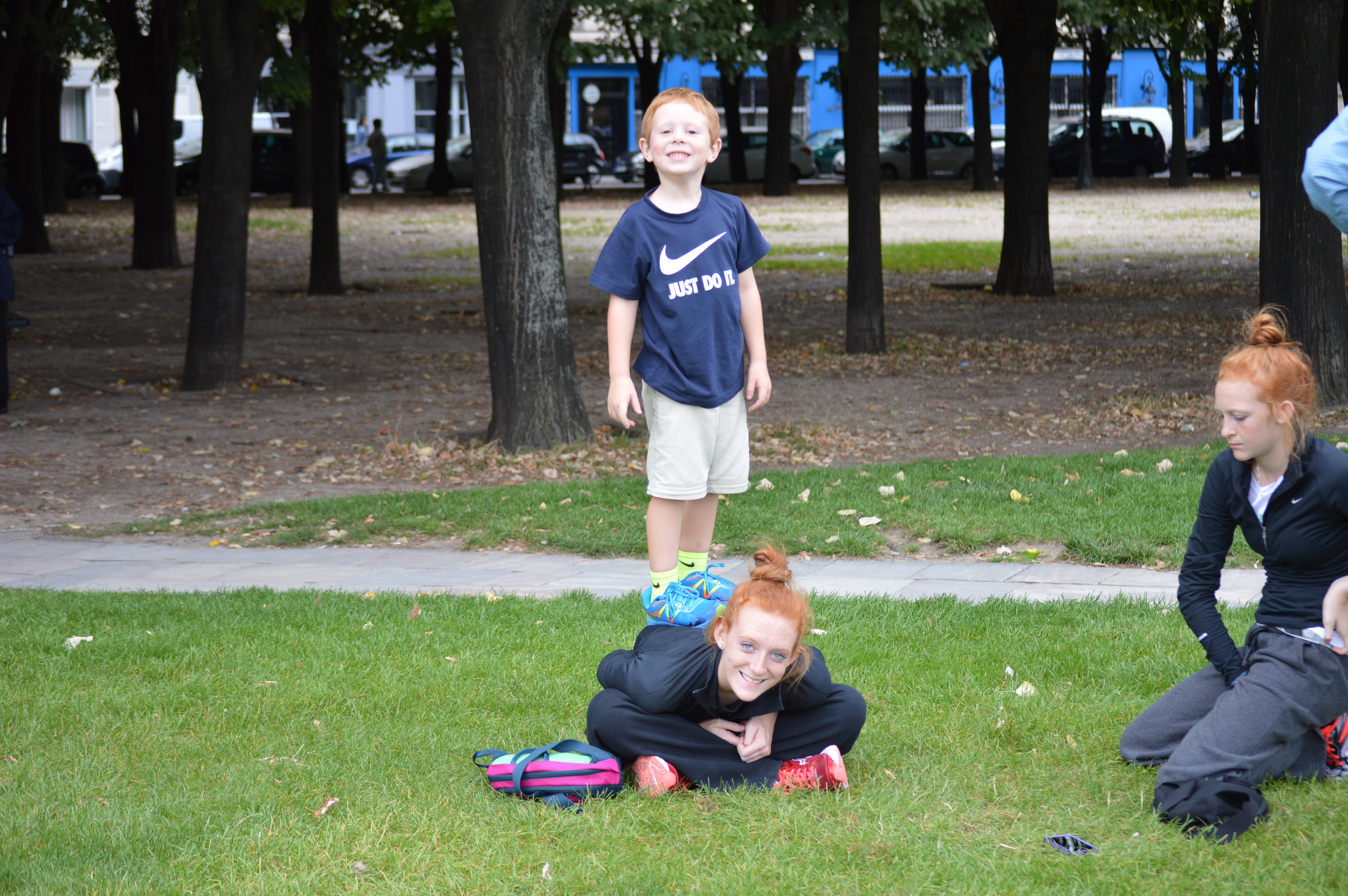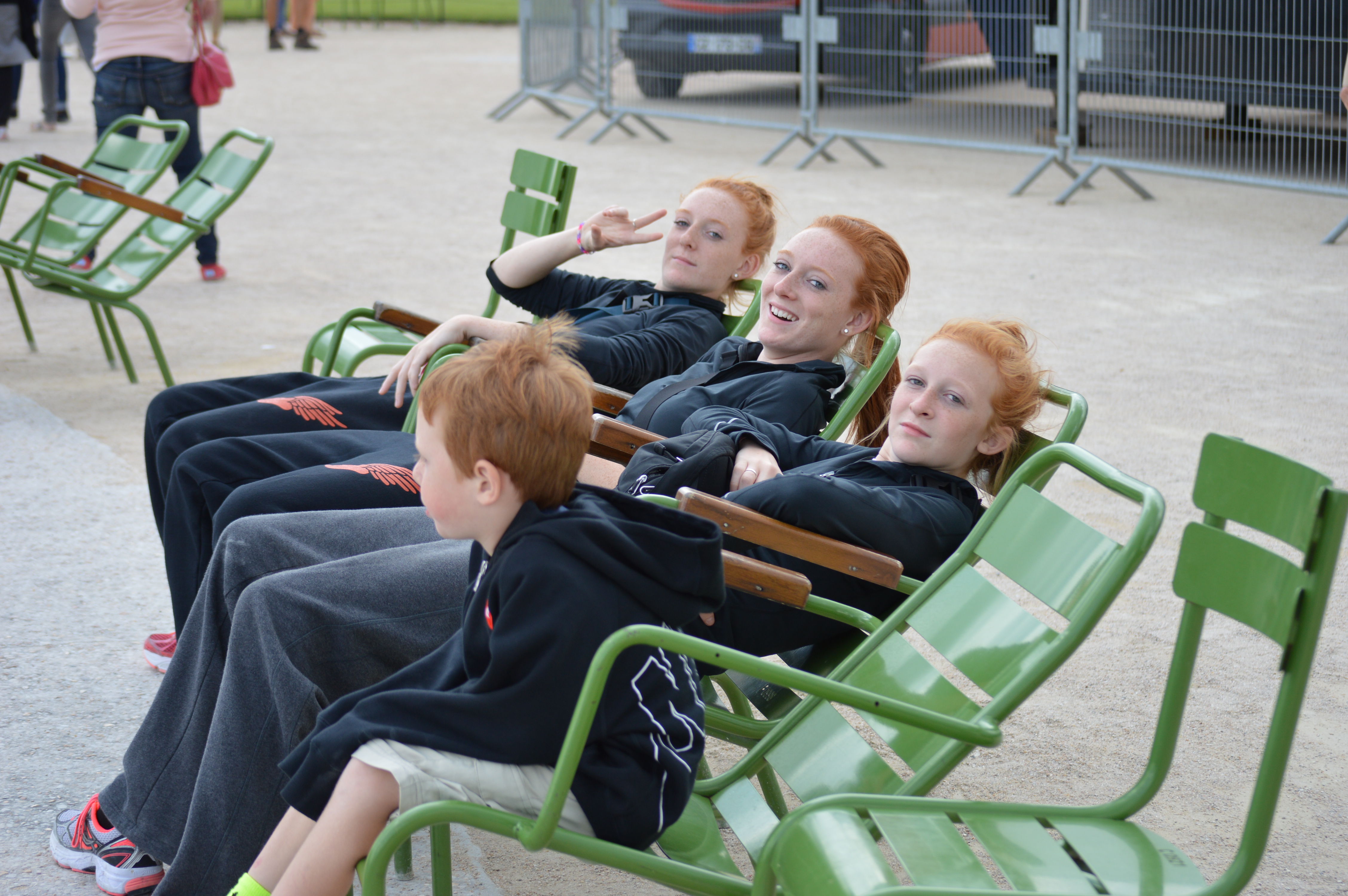 The exhaustion after four hours on the Eiffel Tower. The kids collapsed while Den and I figured the best way to go to the Louvre. It would make sense for some to catch a bus to quickly cover the 1.8 mile span to the Louvre but there is so much detail one can absorb by walking……..sorry kids. My parents did it to me and I could almost guarantee our kids will do the same for their kids.