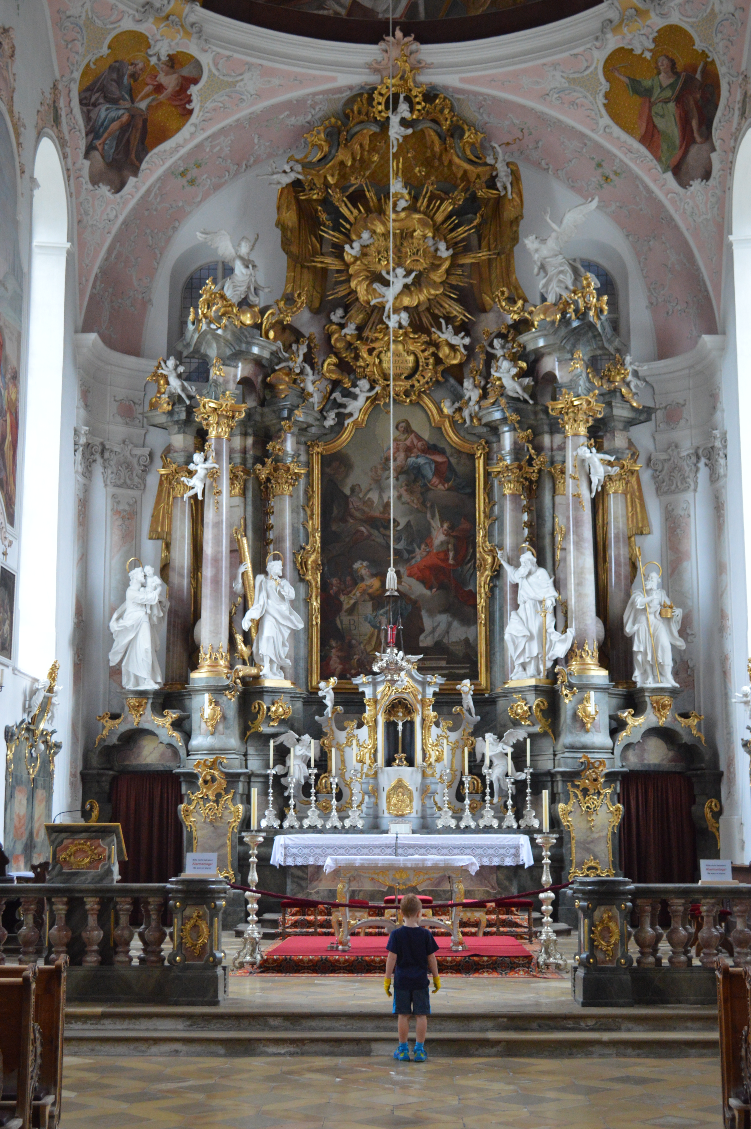 The outside of the church so simple yet the inside very ornate. The church was consecrated in 1749. The statues of St. Joseph, St. Peter, St. Paul and St. Joachim tower over the altar.