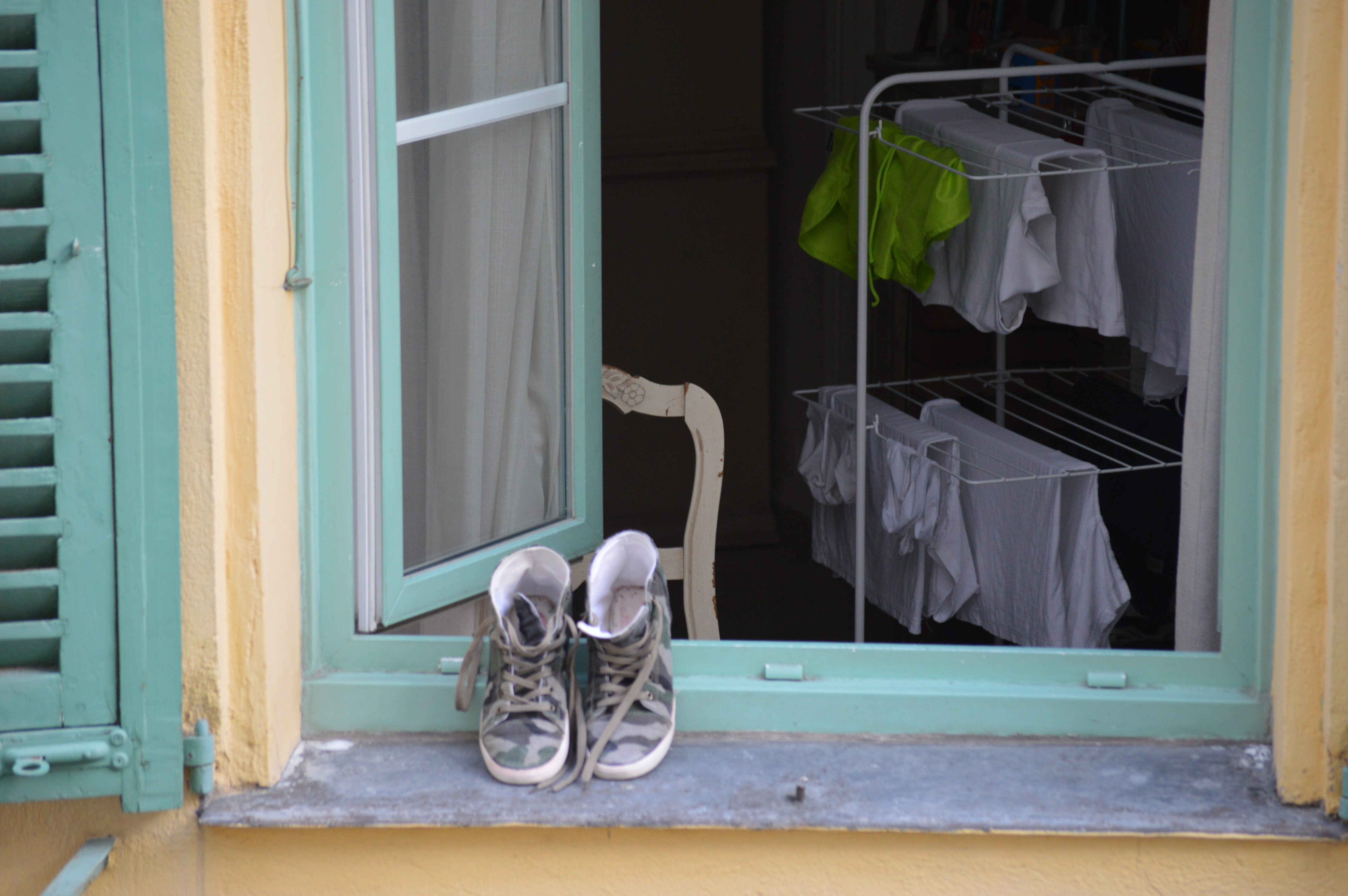 We stood at the door, two keys in hand, but no key hole. We chuckled at being so close. All twelve hands feeling along the door, pushing on a gold plated square, but nothing–no hole, no flap to lift to find a hole. We looked behind us to find the shopkeeper of the jewelry store, a tall black man that had a relaxed French Riviera look to him, smiling. He told us to wave, what we thought to be the key chain, in front of the gold metal plate and push the door. And so we were in, climbing the 72 steps through a wide, unkept hall, each flight looking out the window to see into the building across the street.