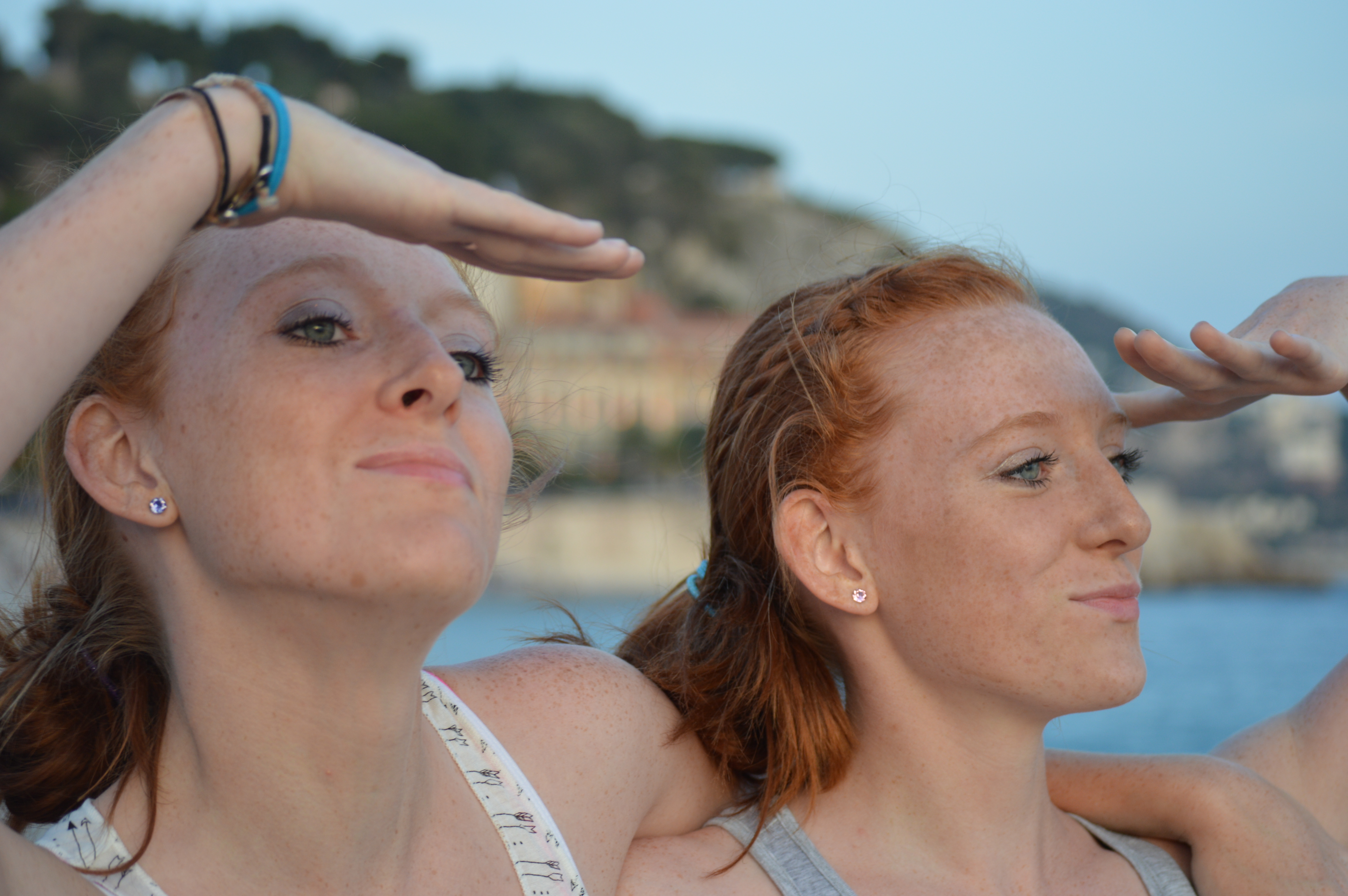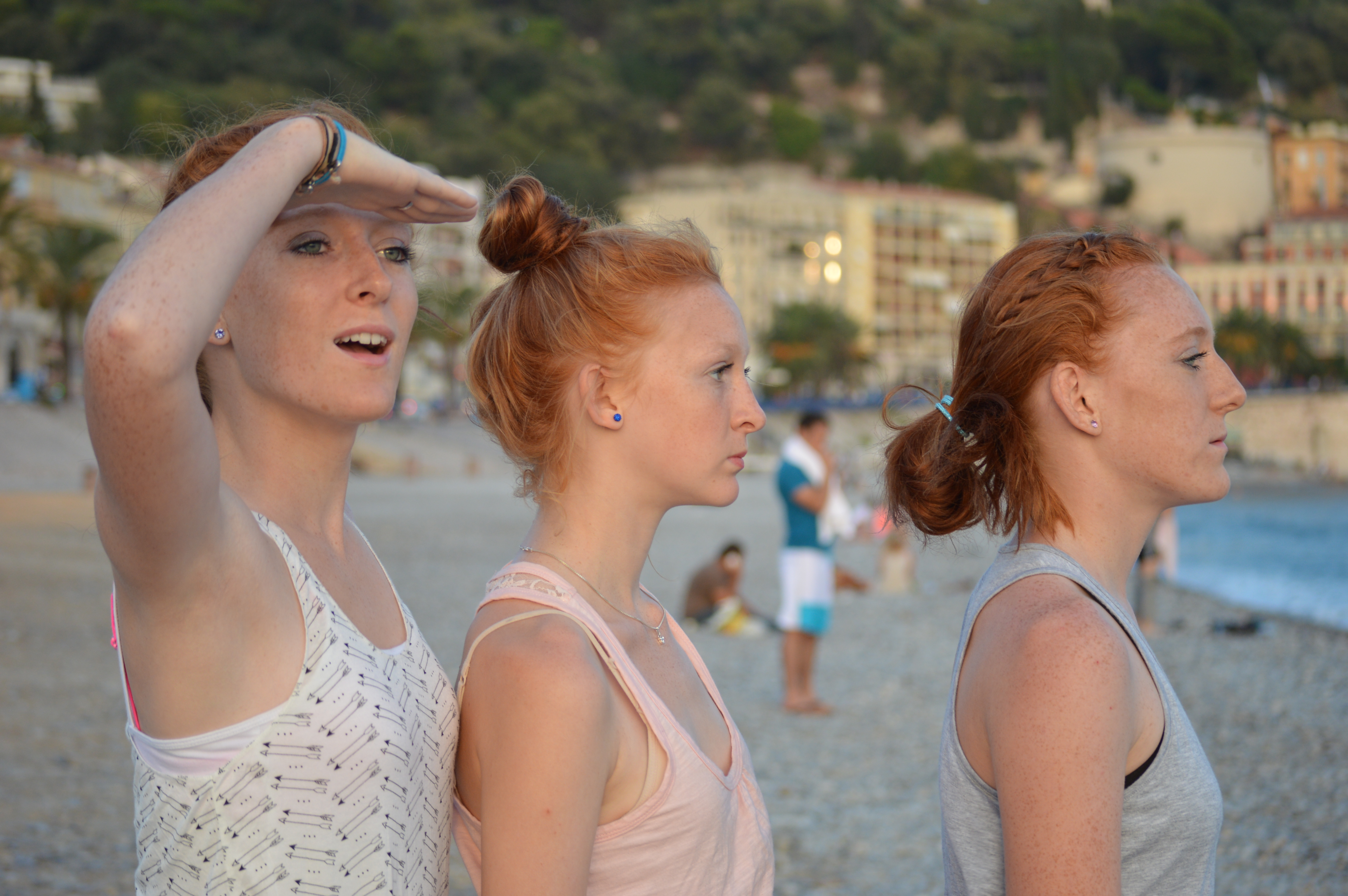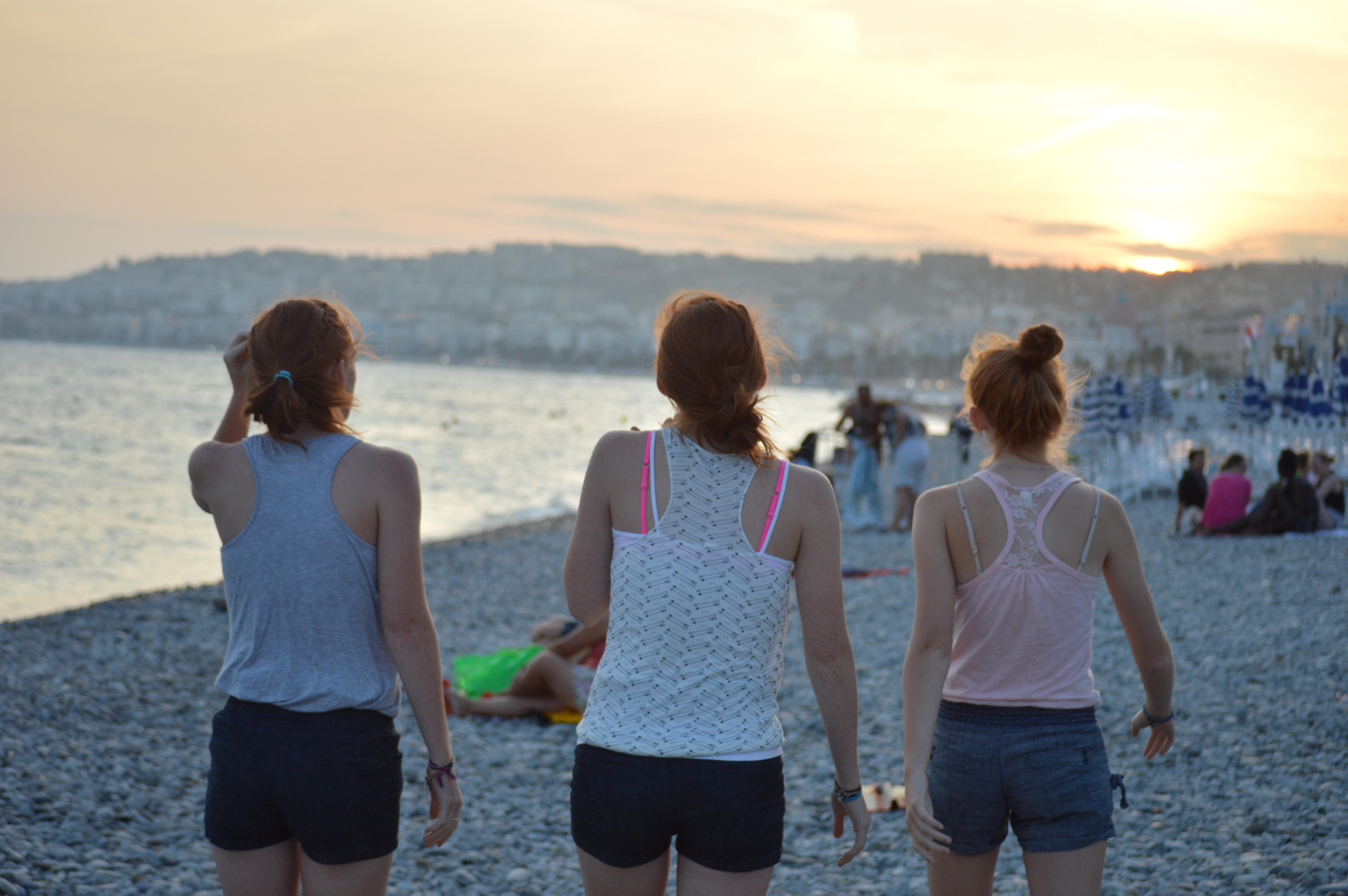 Our temporary parking became our permanent parking. We had to lug our bags several blocks, but most embarrassing for the girls is that our parking was under the most famous street in Old Town. The Saleya Market turns into outdoor dining in the evening and the only exit from the parking was right in the middle of it. Yep, we had to schlep our gear through the hundreds of fine diners. The three girls are very aware that they all look alike, and they get many stares and comments. When you put us all in a line, with similar backpacks and similar stuffed animals in tow, it’s just a sight that people gawk at and then the “audience” is always extra surprised after the “triplet” shock that there is a little baby bear following behind with his own little backpack. I tell the girls to just smile at the people, but when you’re 16 it doesn’t seem that easy.